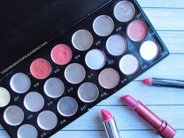 En cuanto a sombras se trata, no progresé demasiado. Terminé el iluminador rosado de la paleta de Amodil, pero a las demás las usé hasta ahí...espero terminar la fucsia para el mes que viene.