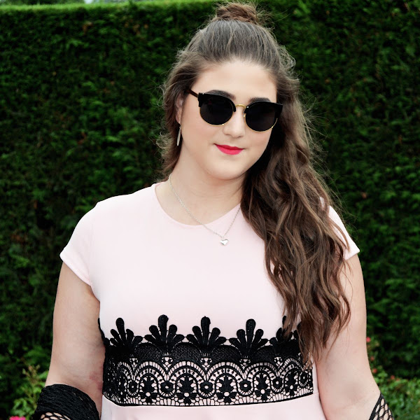 y el pelo suelto suelo llevarlo diariamente. Así que me hice una medio coleta, y de ella una trenza que enrosque a modo de mini moñito.