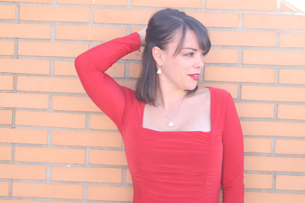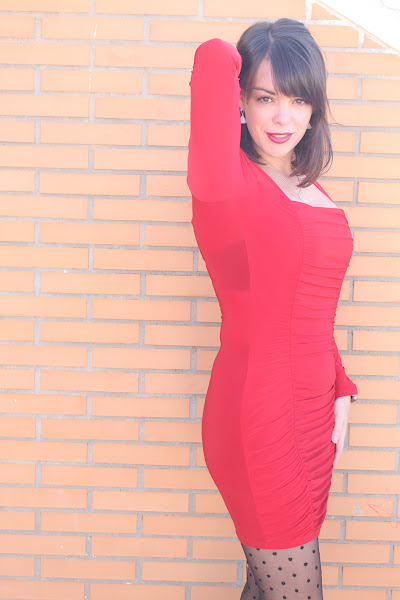 Sólo una cosa que tengáis en cuenta, la tela de delante, es doble y al estar fruncida, queda una capa gruesa y es perfecta, pero la parte de atrás, es una única tela y se transparenta un poco, en el vestido rojo se puede apreciar un poco el sujetador en negro. Pero ya aprendí y para el día que me hice las fotos con el vestido en color champagne, me puse toda la ropa interior beige y así no se transparentaba nada.