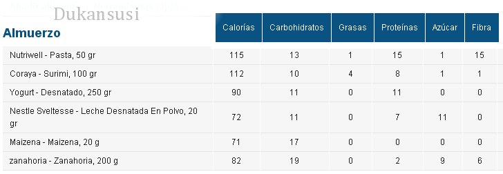 Como podéis comparar tiene mas o menos la misma cantidad de hidratos que otros alimentos aptos en Dukan desde Ataque, y mucho menos hidratos que otros tolerados como es la maizena y la zanahoria, sin contar que es rica en fibra y en proteinas lo que nos hace saciarnos más tiempo que por ejemplo usando la maizena que tiene un alto Indice Glucémico y nos hace tener picos de insulina en sangre y darnos apetito al bajar el nivel de glucosa lentamente