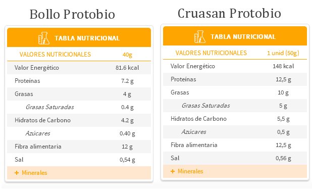 También puedes encontrar bollería rica en proteína y baja en calorías para el desayuno o merienda, con un muy bajo contenido en hidratos de Carbono, sin azúcares añadidos y muy ricos en proteínas y fibra. Como los Cruasanes bajos en calorías PROTOBRIO (5,90€ dos cruasanes empaquetados individualmente) o los Bollos de pan Bajos en calorías PROTOBUN (560€ 3 bollitos empaquetados individualmente) que tienen un sabor excelente, y es ideal poder comer bollería sin remordimientos durante la dieta