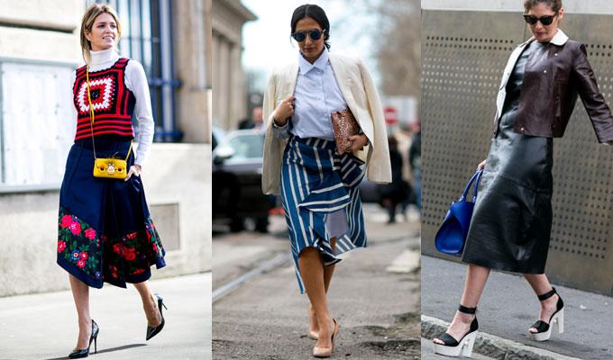 - Las faldas midi o de largo a la rodilla combinan con cualquier tipo de zapato, todo depende del estilo y el toque que busquemos.
