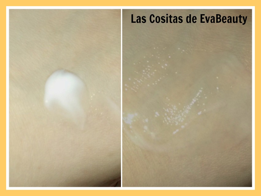 Os dejo estas fotos para que veáis la textura que tiene la crema, y como con el contacto con la piel se hace más acuosa.