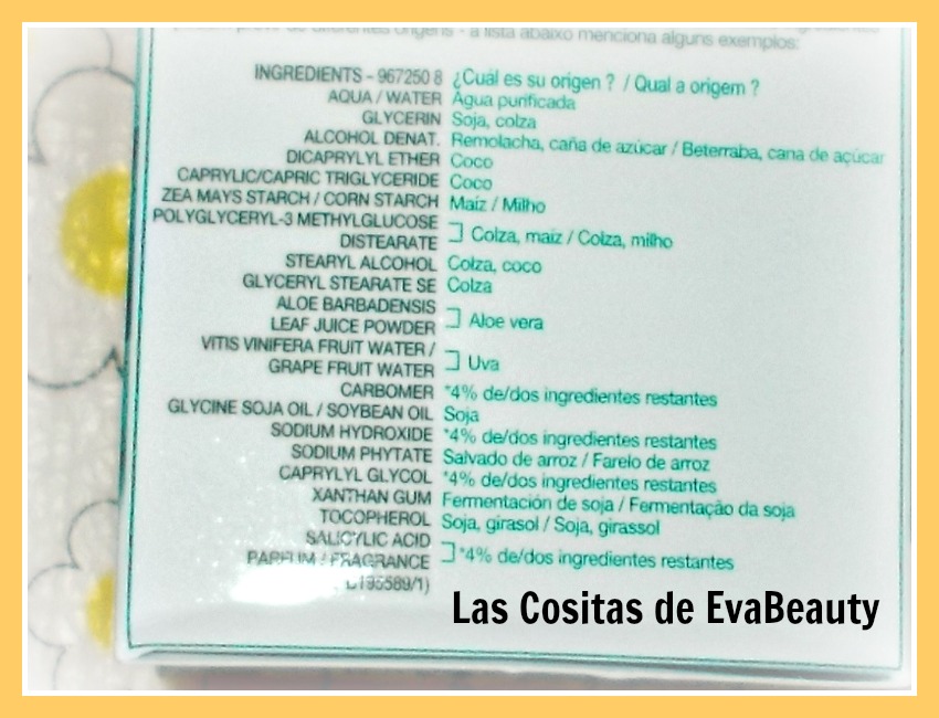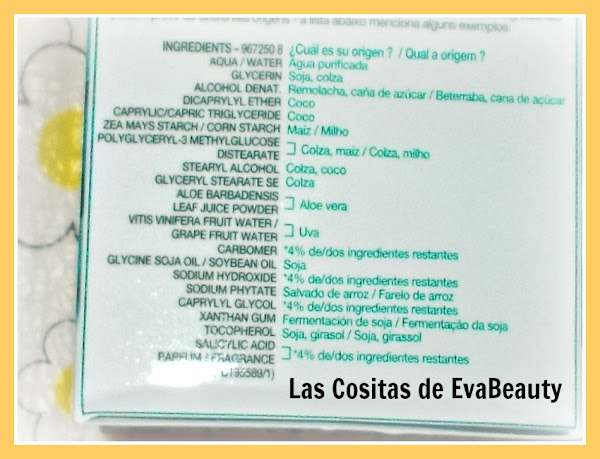 (Ingredientes Crema facial hidratante refrescante botánico con Savia de Aloe de Garnier por Las Cositas de EvaBeauty)