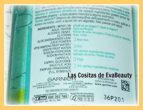 (Ingredientes Tónico botánico con Savia de Aloe de Garnier por Las Cositas de EvaBeauty)