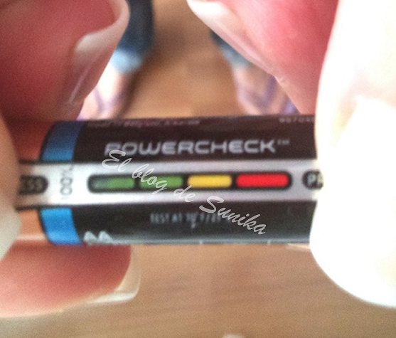 Una cosa que me gusta mucho de estas pilas es la posibilidad de saber la carga que les queda, de esa manera podemos aprovecharlas mucho mejor. Para conocer la carga es muy sencillo, simplemente hay que aplicar presión con los dedos en los dos círculos de color gris que lleva pintados y veremos en un código de colores el nivel que le queda a la pila.
