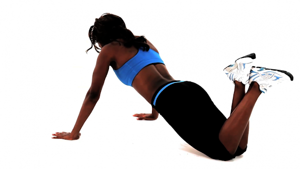 Por último, un nivel previo al estandar: en el suelo, apoyamos las rodillas y subimos y bajamos flexionando los codos. Eso sí, muy importante mantener el abdomen contraído para no arquear la espalda.