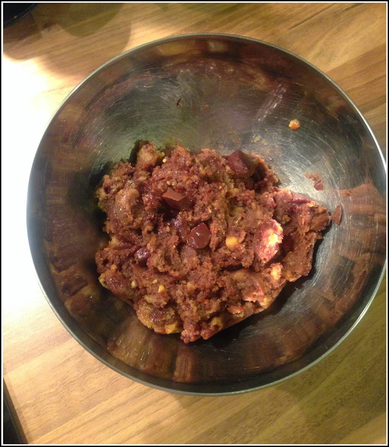 Después, se añade el chocolate a la mezcla. Lo ideal es que esté en trocitos, pero como yo no lo tenía así lo puse todo en la batidora. De esta manera las galletas me quedaron completamente de chocolate en lugar de tipo Chips Ahoy.