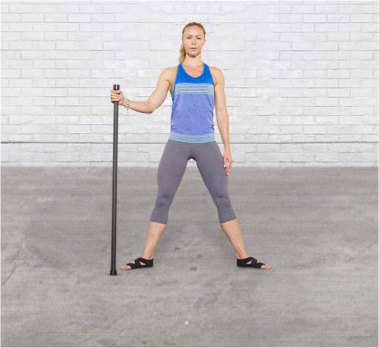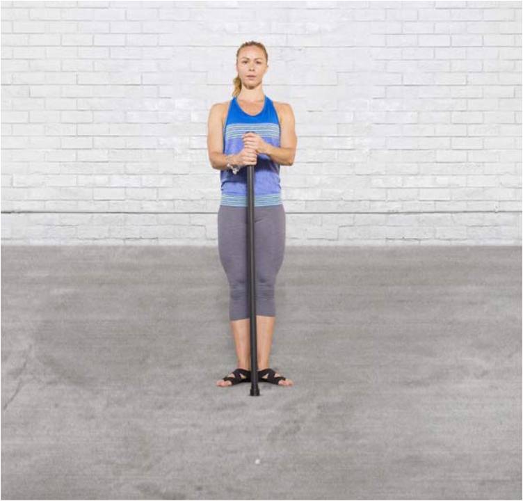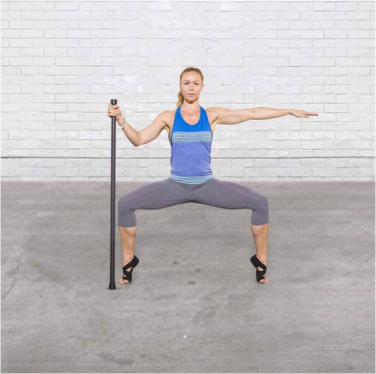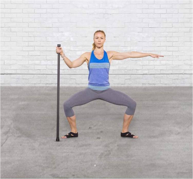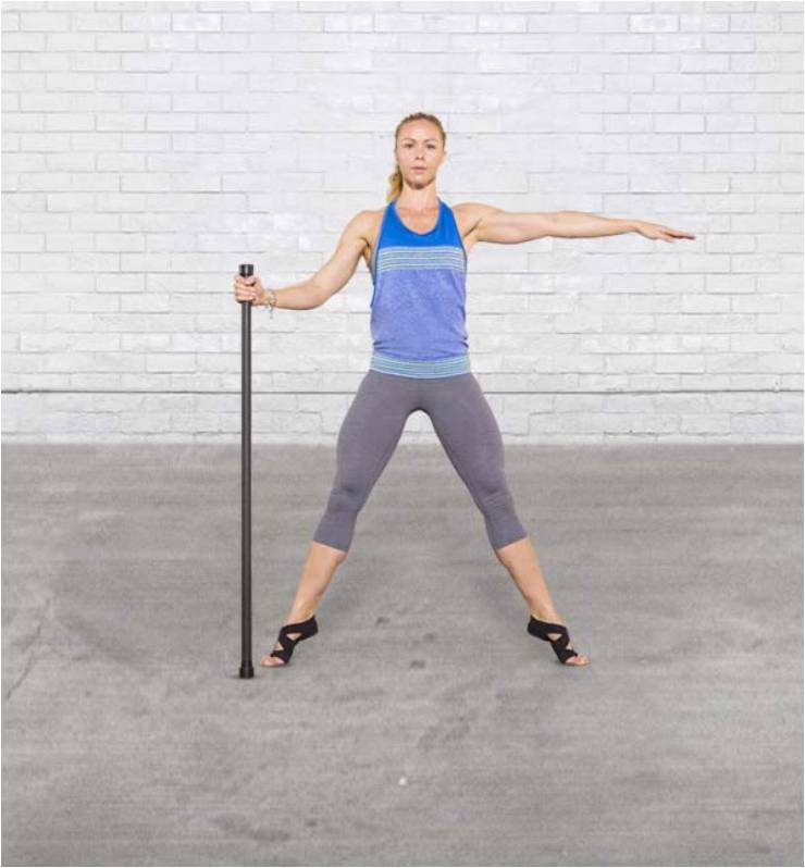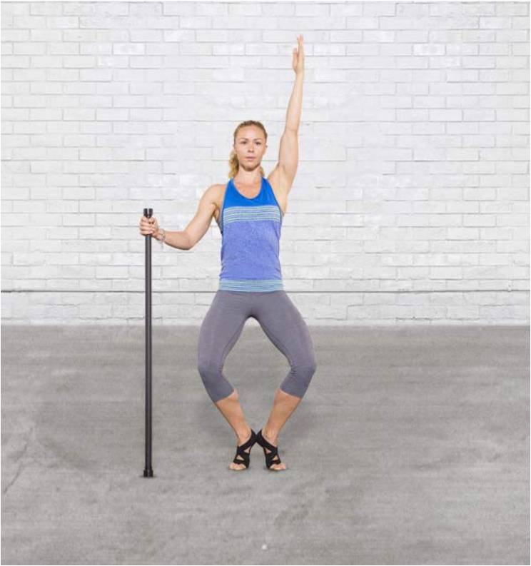 En todos los ejercicios se trata de hacer los movimientos de manera suave y controlada, pues importa más la postura que la velocidad. Además, hay que mantener siempre el abdomen contraído, los brazos estirados y los hombros relajados. Eso por otro lado nos ayudará a mantener el equilibrio, que también se trabaja mucho en esta rutina. Por cierto, no es necesario usar una barra pero, si queréis, el palo de una escoba os vendrá de perlas.