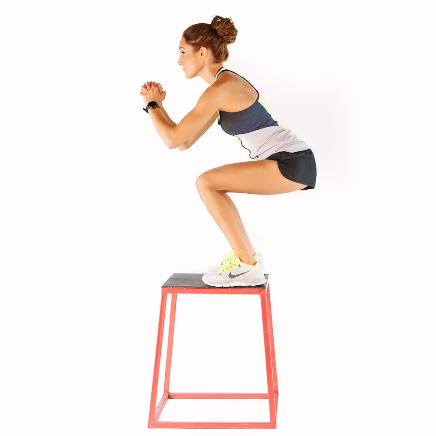 Salto sobre caja o box jump. Este ejercicio es para iniciad@s, pero es buenísimo. Se hace mucho en Crossfit. Consiste en saltar sobre una caja o soporte desde el suelo, con las piernas juntas. En casa lo podríamos hacer sobre una silla, pero con cuidado de que no se caiga al suelo y nosotros con ella... 10 repeticiones son suficientes.