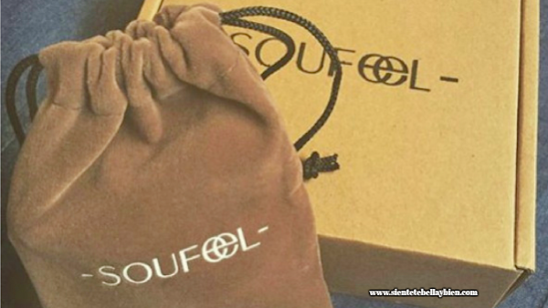 Dentro de la caja de cartón, venía este saquito marrón tan bonito con la insignia: Soufeel y dentro todos los complementos guardados por separado en bolsitas de plástico con cierre ¡vamos a verlo!