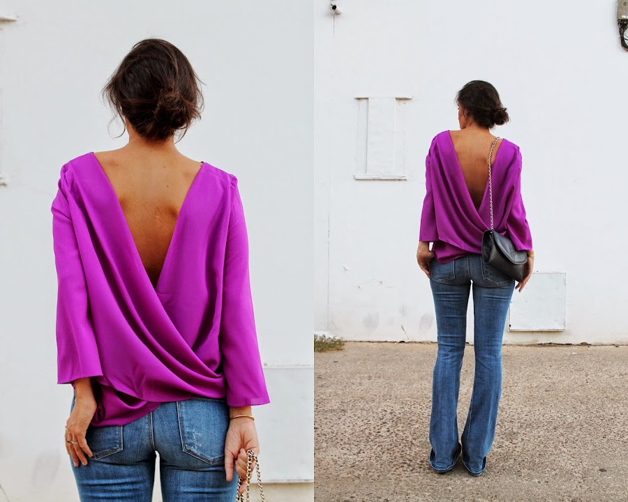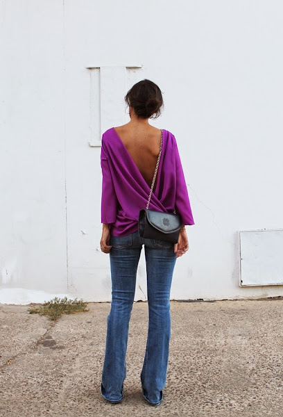 No hay nada que más me guste que una bonita camisa + jeans + taconazo. Si a eso añadimos una camisa en uno de mis colores preferidos (y creo que favorecedores) y la caída y escotazo de la espalda...fue todo un flechazo cuando la vi en Chollomoda (Facebook, Twitter, Instagram).