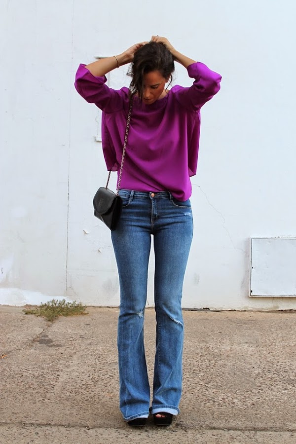 Unos jeans de campana (jamás pensé desde que iba al instituto que me volvería a poner unos...) y unos de mis bolsos favoritos.
