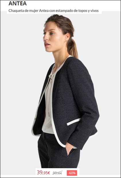 Mango. Tiene varias prendas en promoción, entre las que puedes ver tanto pantalones, como vestidos, cazadoras y blazers.