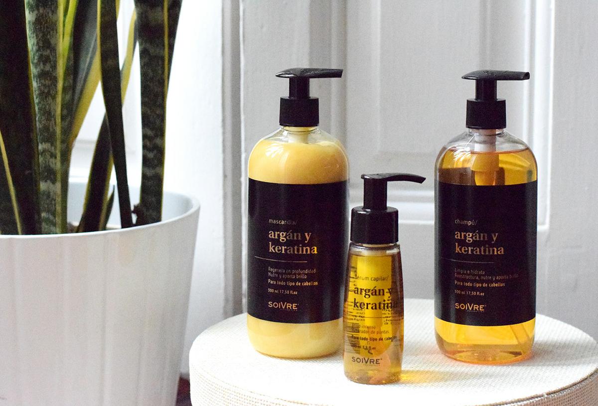En primer lugar, aplico el champú de aceite de argán Soivre, a base de aceite de argán y keratina. Desde que lo uso noto el pelo mucho más brillante y sedoso.