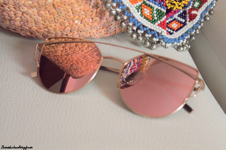 El móvil no puede faltar nunca junto con mis gafas de ver (es lo que tiene ser algo miope) y mis gafas de sol en este caso os enseño las de efecto espejo rosadas de la firma Rosegal y agenda para anotar todo y no perderme nada.