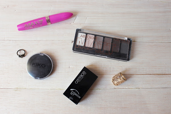 Para los ojos suelo hacerme un eyeliner finito con la sombra negra del kiko, un poco de máscara de pestañas (esa es de rimmel, y para el día a día me encanta) y para las cejas utilizo el set de catrice, que es bastante práctico porque viene con una minibrochita y unas minipinzas (super monas).
