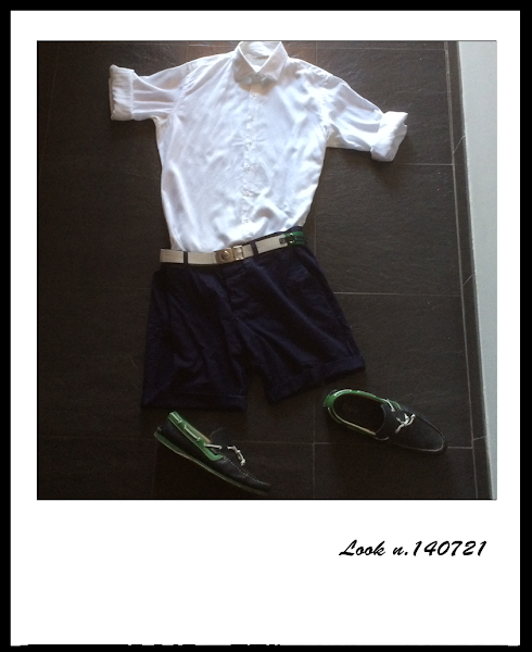 For this occasion I opted for white long sleeve shirt by Purification Garcia, as detailed is sewn with thread of different color each buttons, navy shorts by H & M and bicolor boat shoes in navy and green by Dolce & Gabbana as well as the belt.