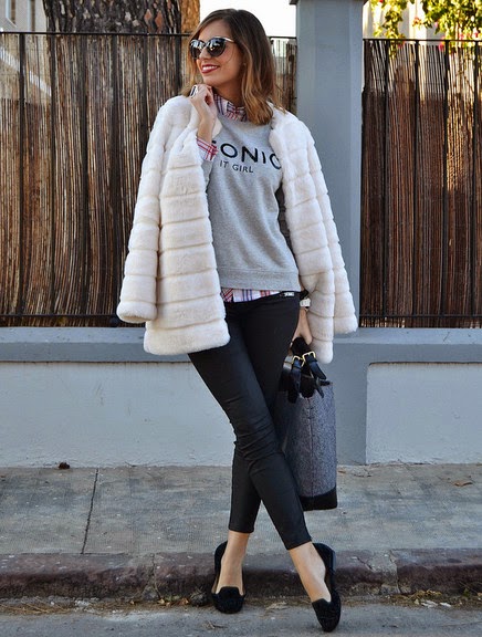 Para ir abrigadas y con las últimas tendencias: camisa de cuadros, sudadera gris con mensaje, abrigo de pelo...