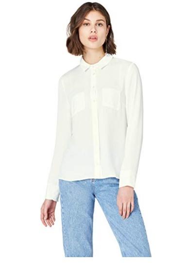 Bien, ¡aquí hay otra opción para una blusa linda y de color neutral que te dará el aspecto profesional que estás buscando! Y agregará un poco más de estilo que una blusa simple mientras se agrega al blazer que usarás sobre ella.