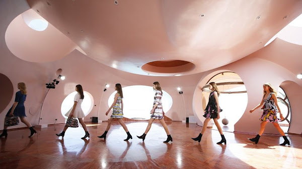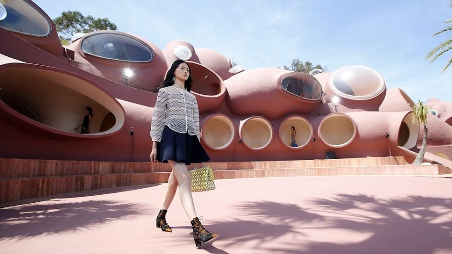 La espectacular casa que Pierre Cardin posee en Cannes Le Palais Bulles o Palacio de las burbujas, el nombre, hace honor a la composición de esta mansión de formas redondeadas diseñado por el arquitecto Antti Lovag, en 1984, fué la elegida por Dior para presentar su colección.
