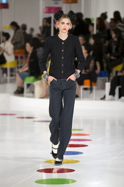 La puesta en escena muy original, con el público en pequeños grupos circulares y círculos de colores señalando el camino, por donde desfilaban las modelos.
