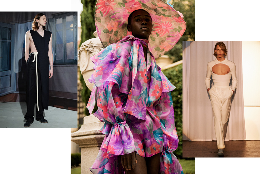 Otro de los diseñadores que respalda la tendencia, y que no para de recibir elogios y aplausos por parte de la crítica, es Ludovic Saint Sernin. Con tan sólo cuatro colecciones a sus espaldas, su director creativo, ya ha conseguido situar la marca como una de las más deseadas del momento, abogando por aires afeminados e incluso apostando por irreverentes detalles como mostrar el pezón masculino como algo atrevido (al igual que se hace con las mujeres)