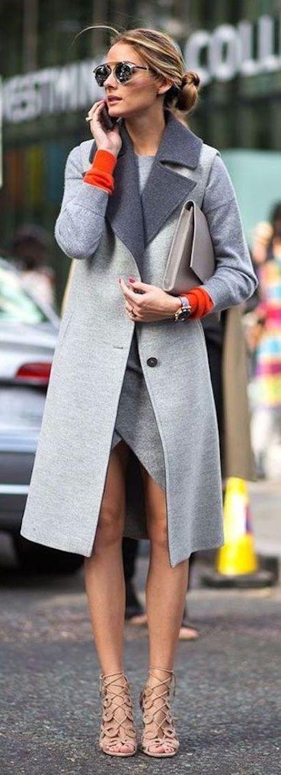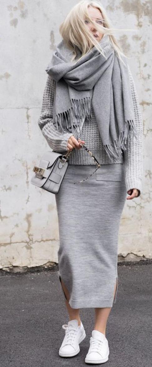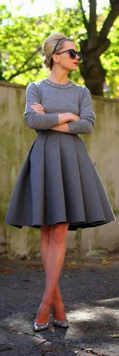 Puedes vestirte completamente de gris, incluso combinando distintos tonos de este color o llevarlo en una sóla pieza, como en la falda o el sweter , llevarlo en los complementos como zapatos o cartera; pero de algo puedes estar segura; te dará un look elegante y refinado.