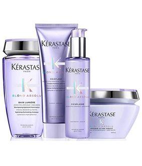 KÉRASTASE Set Blond Absolu - Champú Bain Lumiere 250 ml + Acondicionador Fluide Miracle 250 ml + Mascarilla Ultra-Violet 200 ml y Sérum Cicaflash 150 ml