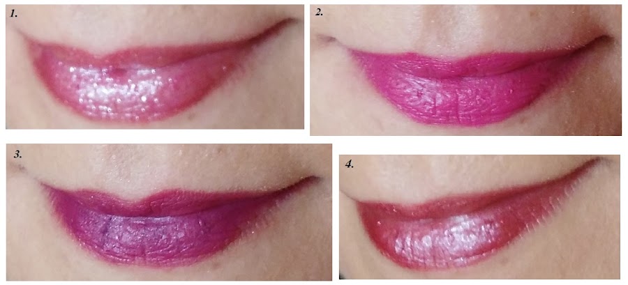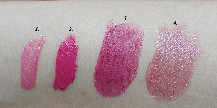 A continuación os dejo unos swatches para que podáis ver los tonos. En las fotos anteriores os he puesto un número para que sepáis a que labial pertenece cada swatch.