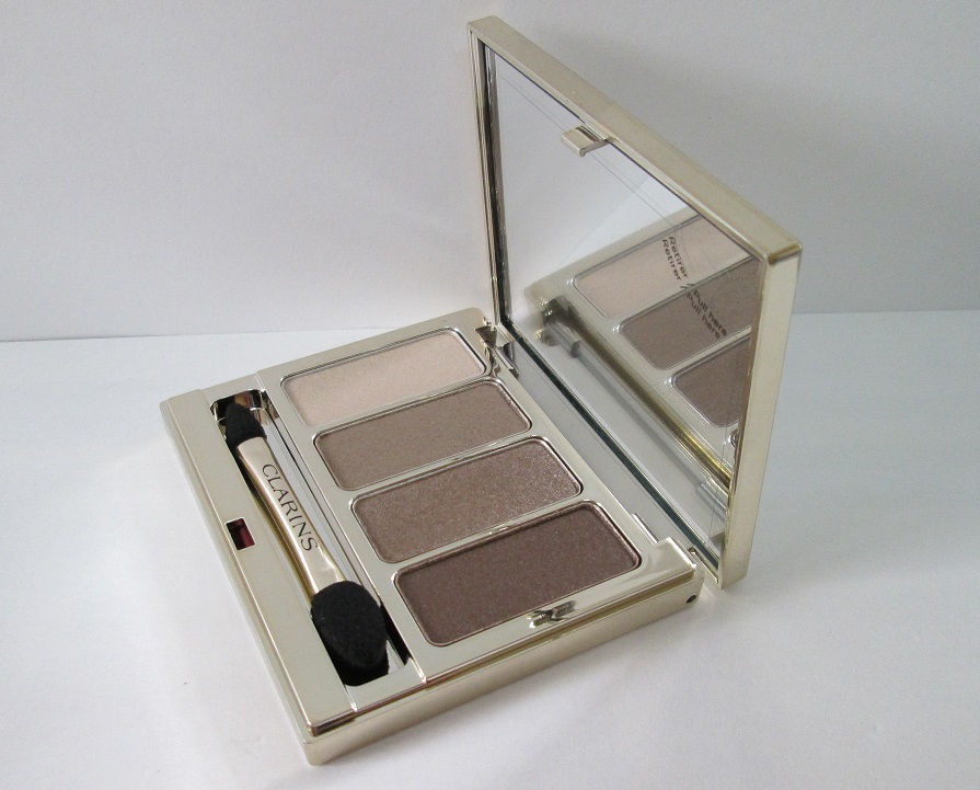 Por último, la marca nos enloquece con tres diferentes "Cuartetos de Sombras de Ojos", y el que os enseño en esta entrada, es el "03 Brown", donde estas preciosas 4 tonalidades, enriquecidas con polvos de cera de carnauba y pigmentos minerales, ayudan a confortar los párpados. Lo mejor de ellas, es que se pueden aplicar tanto en seco como el húmedo. Y, cómo podéis ver, se presenta en un packaging, muy bonito y elegante, en tono dorando, donde nos encontramos con 4 sombras de ojos, en tonos nudes y/o marrones, un espejo y un aplicador doble de esponjita. El precio, de cada una (la paleta), es de 45,70€, aproximadamente.