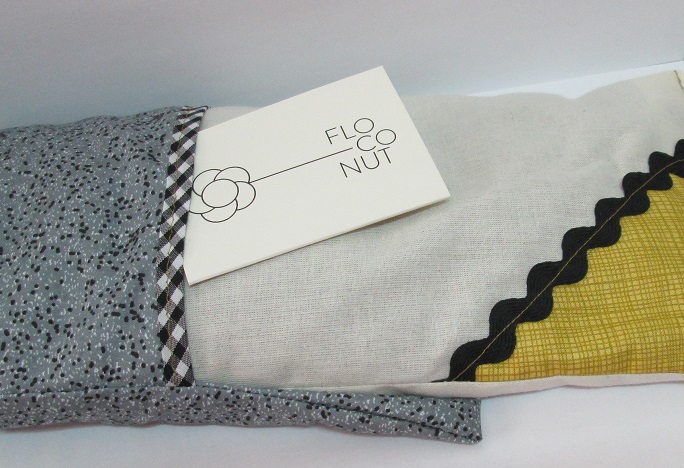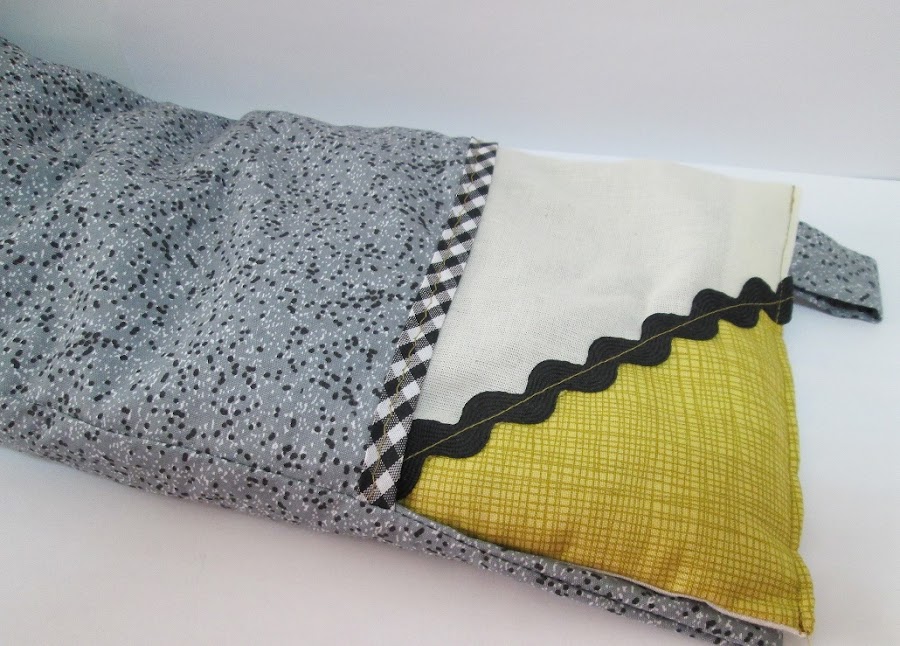 El diseño que tiene, la tela, los materiales en los que están realizados..., ¡son una maravilla!. Me quedé asombrada de lo bien que está cosido, y, sobre todo, de su acabado final, ya que, como veréis en esta foto, combina diferentes tipo de telas y estampados. Cuando lo recibí, tan bien envuelto, con papel de celofan y, lo abrí y desenvolví, me recordó mucho a una almohada, jejeje. Pero para aclararos un poquito..., os comento que la tela grisácea se trata de la funda y lo otro, es en sí, el saquito.