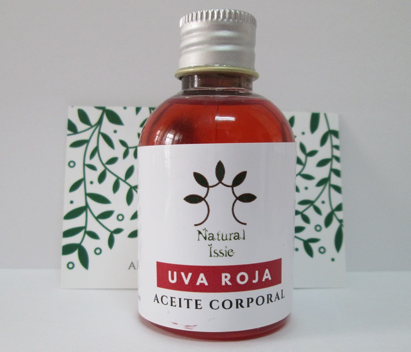 Tal y como os comenté, al principio, los aceites corporales, además, del formato grande (200 ml de cantidad), esta marca, también, los venden en tamaño mini (50 ml), con el fín de que puedas probarlos, para saber si te gusta más uno u otro, jejeje. El primero que os enseño, se trata del aceite de uva roja, el cual, tiene un aroma muy perceptible, pero ¡riquísimo!. A mí, me recuerda a una mezcla entre vino y frambuesa, jejeje (para que me entendáis). Su textura, en cambio, es super ligera..., tal es así que, parece casi agua.