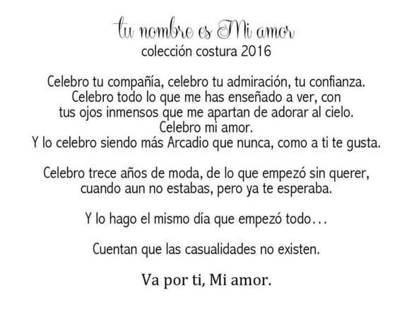 Arcadio siempre conquista mi corazón con sus creaciones pero esta colección fue realmente brillante, más femenina y elegante que nunca, muy de mi estilo, con toda su esencia transformada en diseño, la misma que me ha hecho adorarlo desde que le conocí.