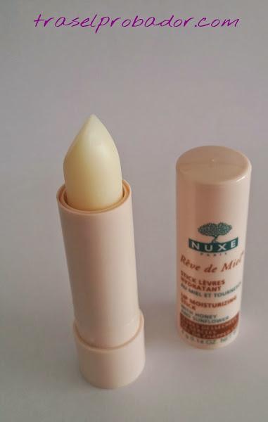 Había leído muy buenas opiniones del bálsamo hidratante de la línea Rêve de Miel de la marca Nuxe y normalmente es el formato que siempre llevo en el bolso pero vi que había una oferta en Mi Farmacia Online con el stick labial de la misma marca y animé a probarlo.