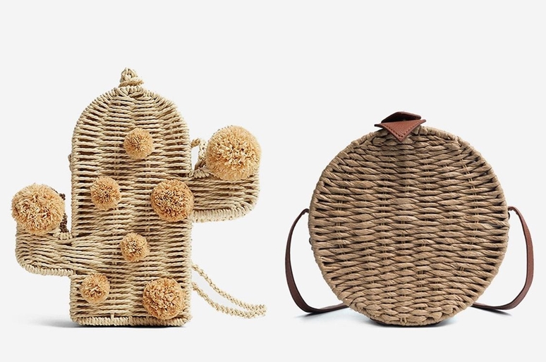 Redondo, de forma exagonal, con formas divertidas y en distintos colores, como multicolor, beig, marrón, negro. Tambien lo hay con mix de materiales en los que combinan la rafia con asas de madera, sintéticas o de tela.