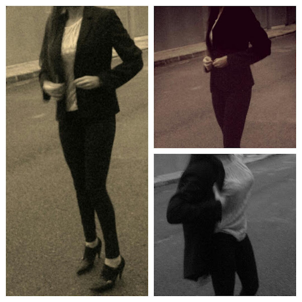 Pues no me quedó más remedio que recurrir a todo un clásico: El Negro, pero combinándolo con dorado para darle chispa al outfit. Elegí unos pitillo que compré en Mango Outlet hace un par de semanas y que me costaron 7,95 â?¬ ( ahora los tenéis por 12, 95), una blusa dorada, ancha y transparente, y un blazer clásico negro ( las dos prendas también de Mango), todo combinado con unos zapatos masculinos con tacón, que me encantan y fueron un regalo hace unos cuantos años y un bolso MK que me prestó una amiga, si no vamos ni de broma jajaja!!!