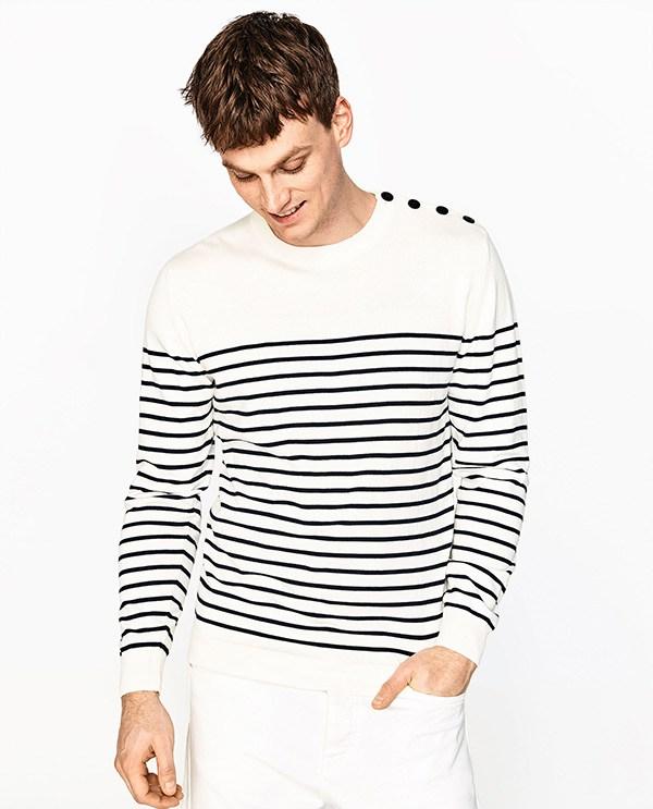 Yo creo que todos los años me hago con una prenda de este tipo y es que me gustan mucho, e incluso intento que mi marido se compre algo, como este jersey tan bonito que os muestro hoy. El blanco siempre es un color muy favorecedor y si le añadimos las rayas en color azul marino o negras es una combinación ganadora! Una tendencia que nunca pasará de moda.