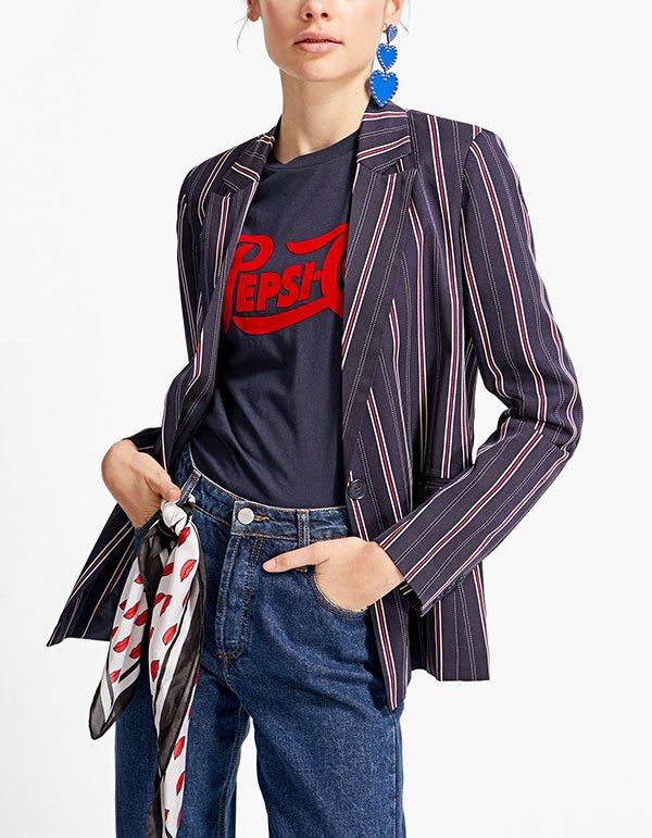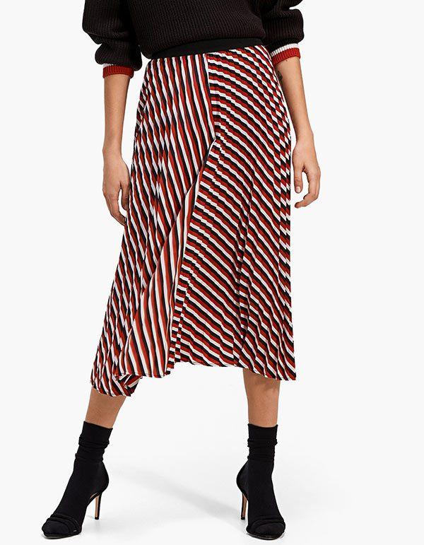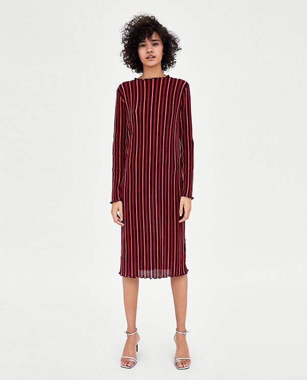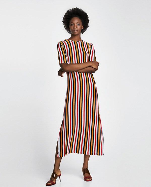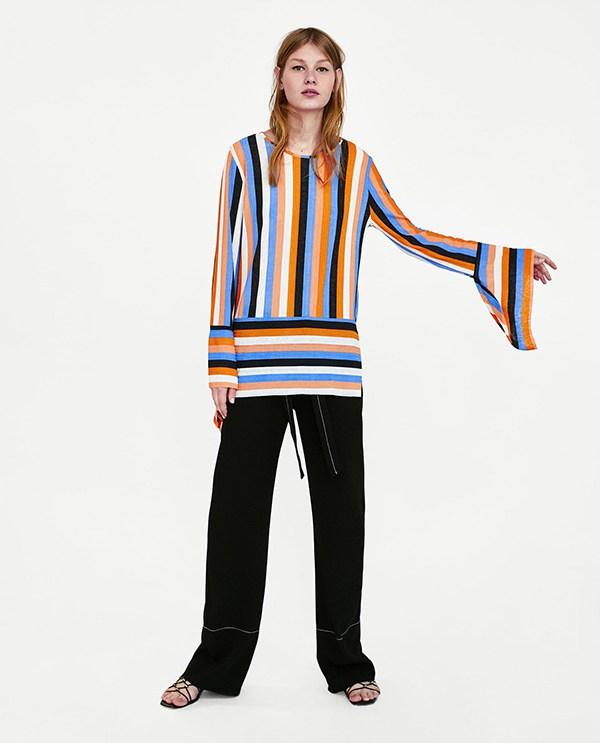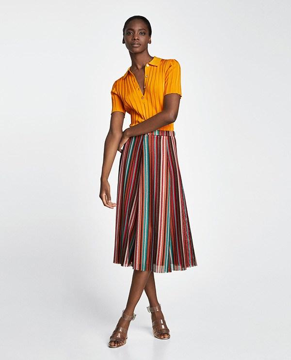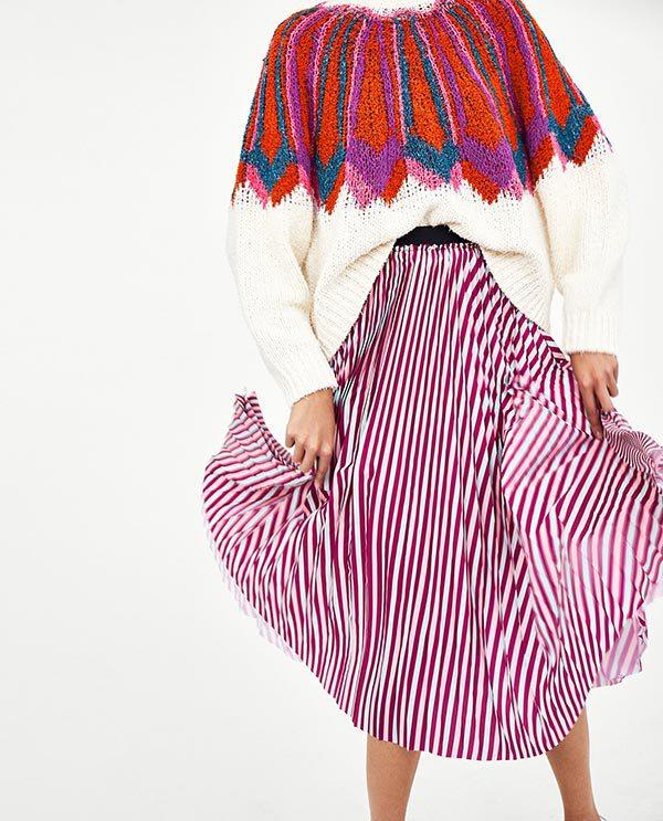 Las rayas multicolores tiene un aire retro reforzado por los materiales en los que podemos encontrar las prendas, tejidos sedosos o brillantes, plisados, canales y tricot que nos recuerdan a un pasado lejano como es la década de los 70.