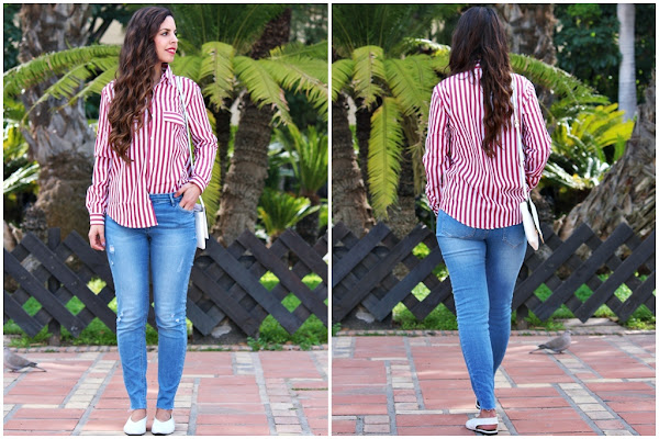 Holaa!! Para el look de hoy, decidí mezclar rayas, con esta camisa de Stradivarius, con flecos, gracias al bolso de Chollomoda que os enseñé la semana pasada, y además puse un toque de color gracias a mis nuevas espadrilles KISSME, en su web podéis ver todos los modelos que tienen, botas, zapatillas, bailarinas, cuñas... Para chico y para chica, y lo más importante fabricadas en España, y además ...