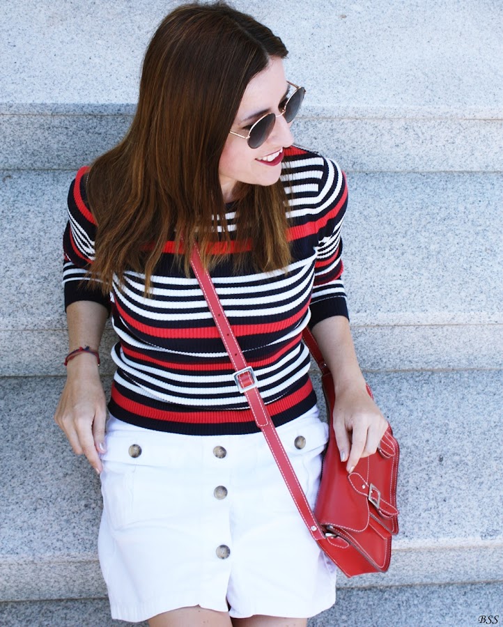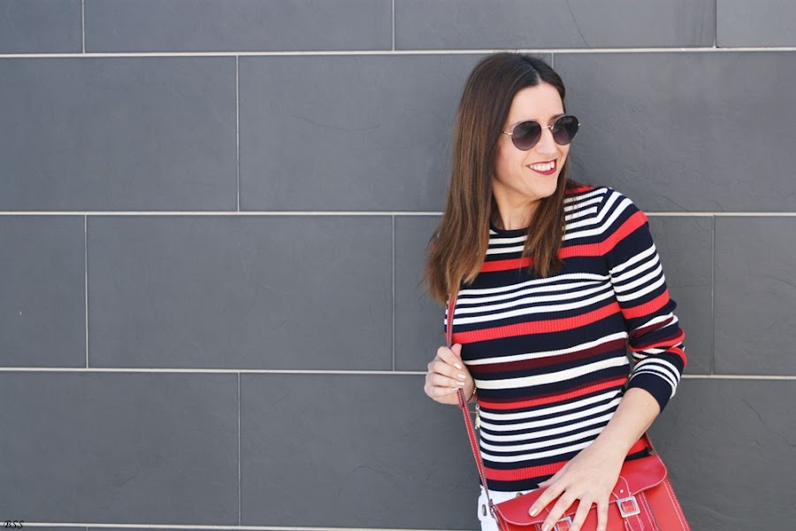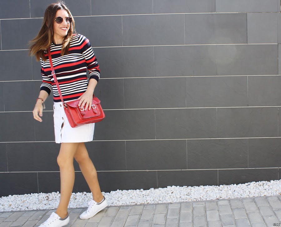 Yo voy progresivamente acercándome a los looks más veraniegos en este outfit que combina jersey de punto y falda abotonada del verano pasado.