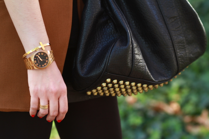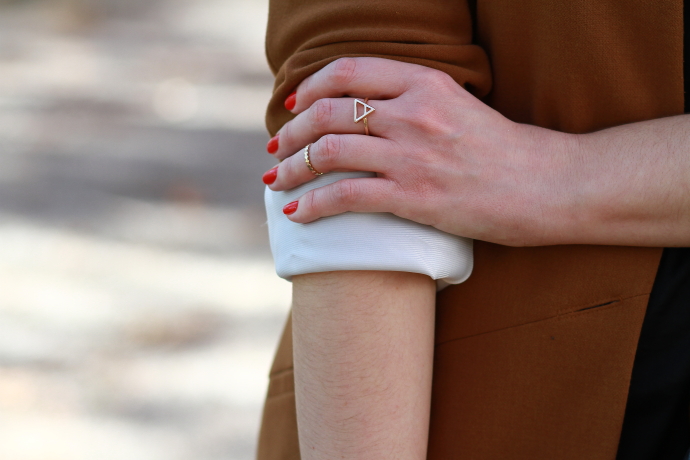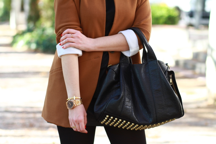 Blazer: Stradivarius. Top: Stradivarius. Falda/Skirt: Stradivarius. Anillos/Rings: Mango. Pulsera/Bracelet: Regalo/Present. Reloj/Watch: Michael Kors vía Ramiro Joyeros. Zapatos/Shoes: Gloria´s Shop. Bolso: Vj Style.