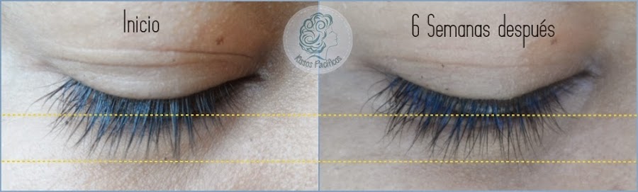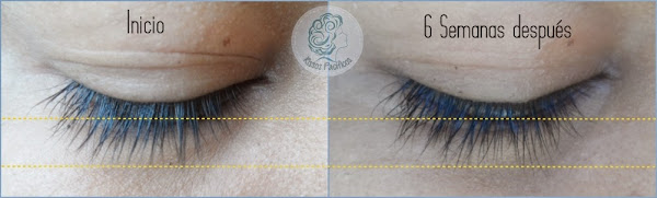 Mis pestañas han empezado a verse más gruesas, tal vez sea imperceptible, pero en las fotos se observa claramente el final de cada una, cosa que no se podía apreciar al inicio del tratamiento.