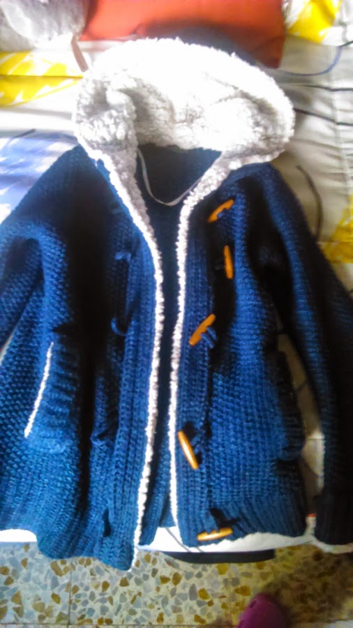 Esta chaqueta de borreguillo y con botones de trenca la había en varios colores y este azul fue el que me convenció. Da un calorcito increíble, queda muy bien y me costó 10 euros, una ganga!