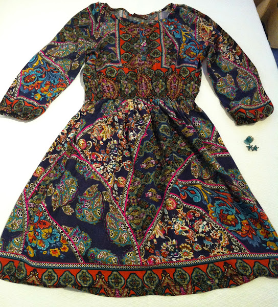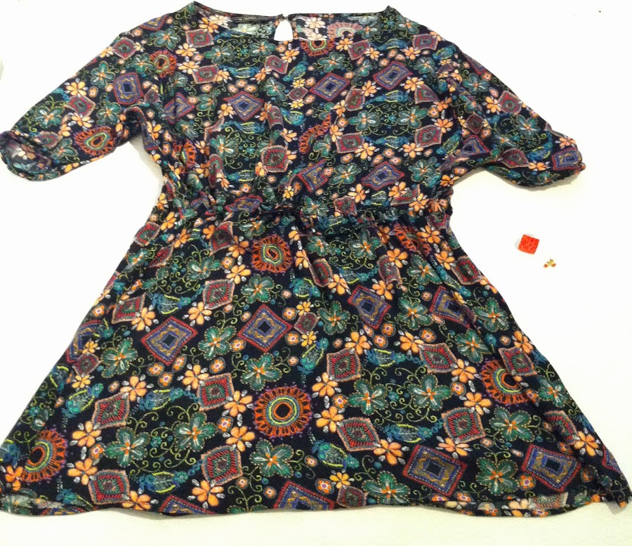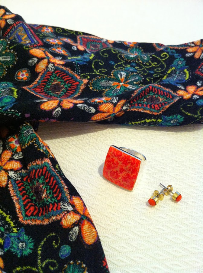 La última vez que salí de rebajas adquirí muchas prendas de SuiteBlanco. Algunas de ellas las podré seguir utilizando en la primavera, como este vestido estampado de tela, que combinaré con unos pendientes naranjas y un anillo que yo misma decoré con esmalte de uñas.