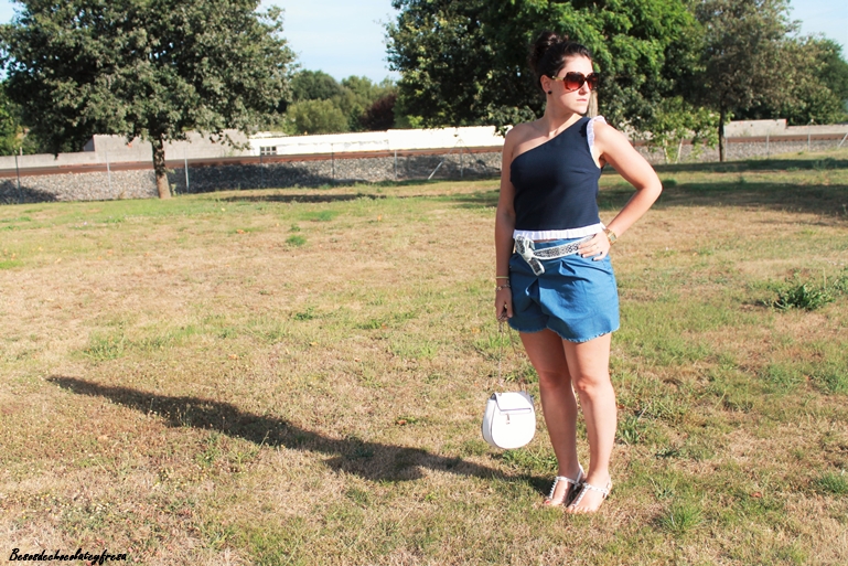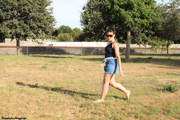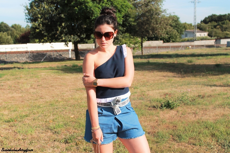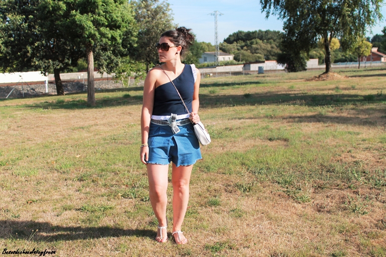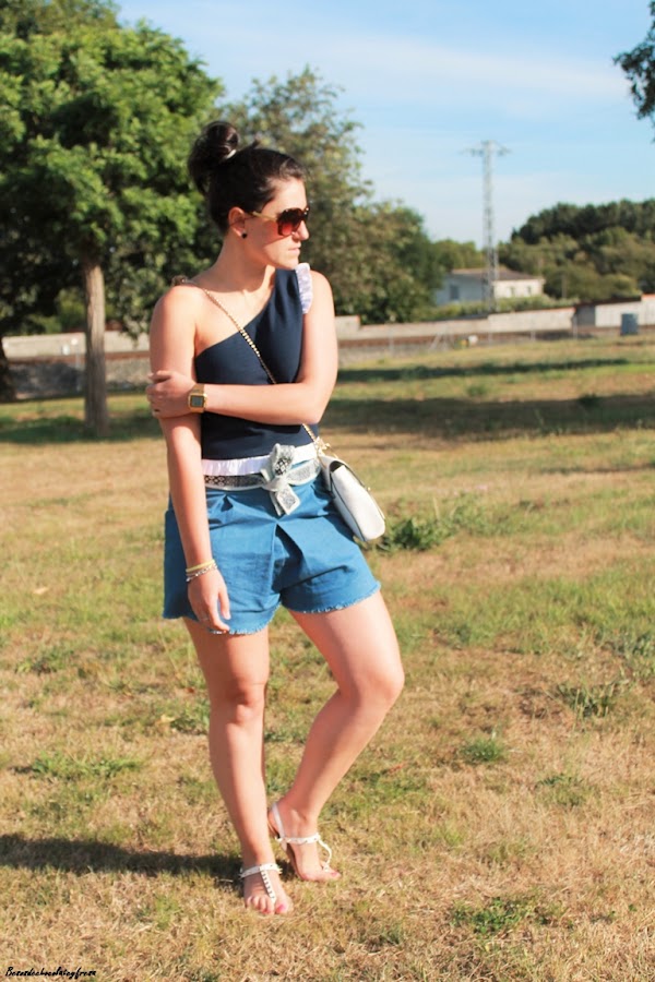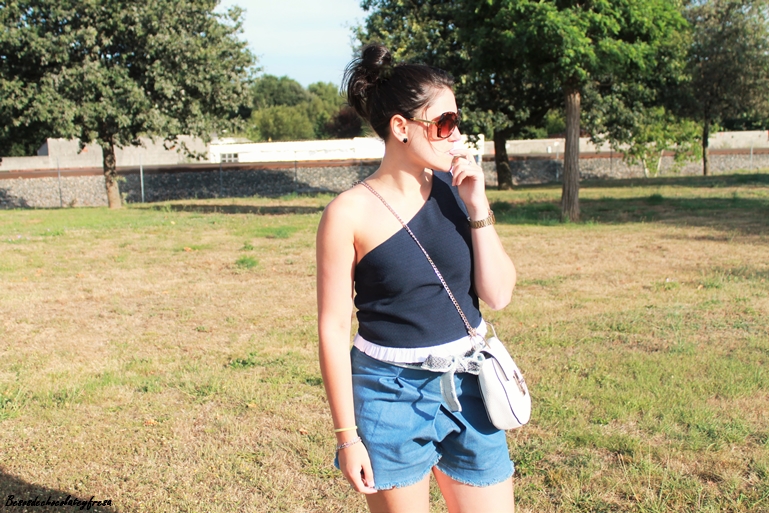 Poco a poco os voy enseñando looks con als distintas prendas que fui adquiriendo en las rebajas...nose que me pasan con las de verano que no hay quien me frene...ains...Algunas ya os las enseñé y otras iran saliendo poco a poco. Hoy les toca el turno a un #outfit en azul marino compuesto por crop top con volantes y un solo tirante dejando totalmente al descubierto el otro y los shorts con cinturón incluido y tipo flare shorts (es decir deshilachados en los bajos).
