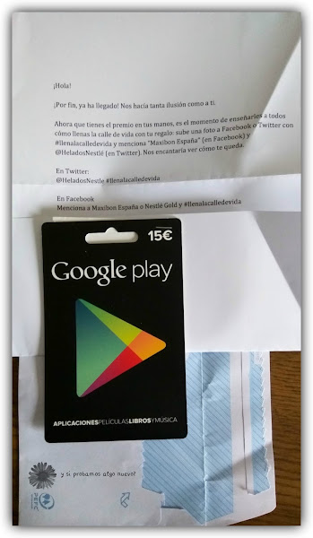 Este verano me tocó una tarjeta de Google Play de 15 en un helado Nestlé, había que capturar el código bidi y al momento te salía si estaba o no premiado. No sé si seguirá la promoción, a mí no me ha tocado en ningún otro helado más premios.