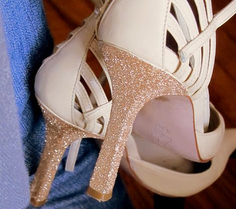 la idea es modernizar tus sandalias con purpurina!!!! y la realización también es muy sencilla!! Simplemnete necesitas cola y purpurina!!! Si quieres seguir el paso a paso de cómo forrar tus tacones hazlo también con este blog de manualidades