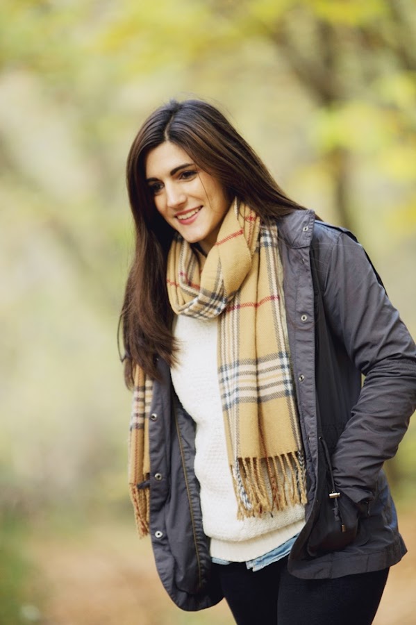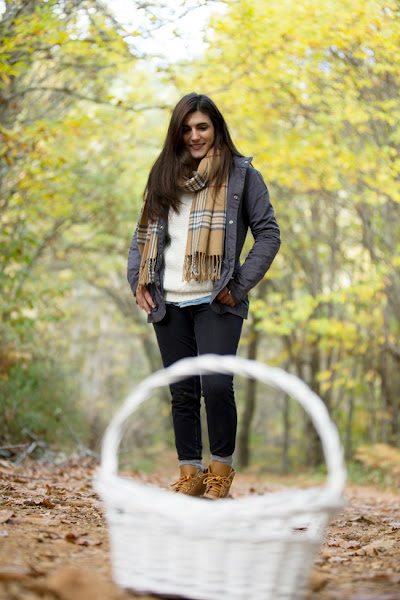 En cuanto al outfit, es bastante simple y sencillo, como a mí me gustan. No necesité abrigarme demasiado y, como no íbamos de senderismo propiamente dicho, no tuve que vestirme con ropa deportiva. Valió con un conjunto de jeggins, camisa vaquera, jersey trenzado, chubasquero y bufanda. Ese día hacía unos 15 grados de máxima así que os podéis imaginar que estuvimos estupendamente paseando por el campo.