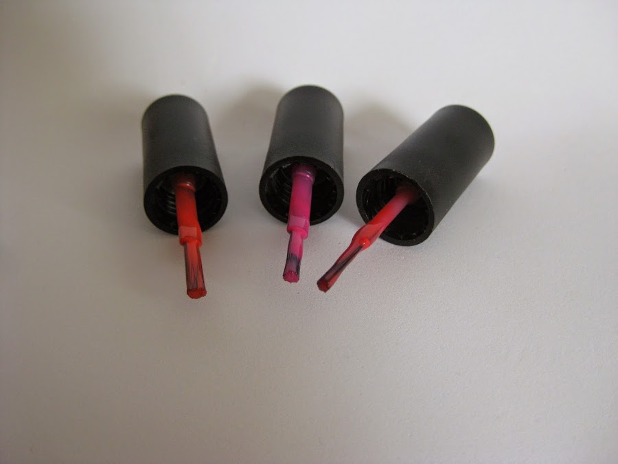 El caso es que estando en la playa mi madre me dijo que los probara ya que pintaban muy bien y eran duraderos,en concreto ella me dejó el suyo (el del medio de la foto 588) y después de bañarme en el mar y la piscina,en cinco días, apenas se había quitado el esmalte!!! y sin top coat.